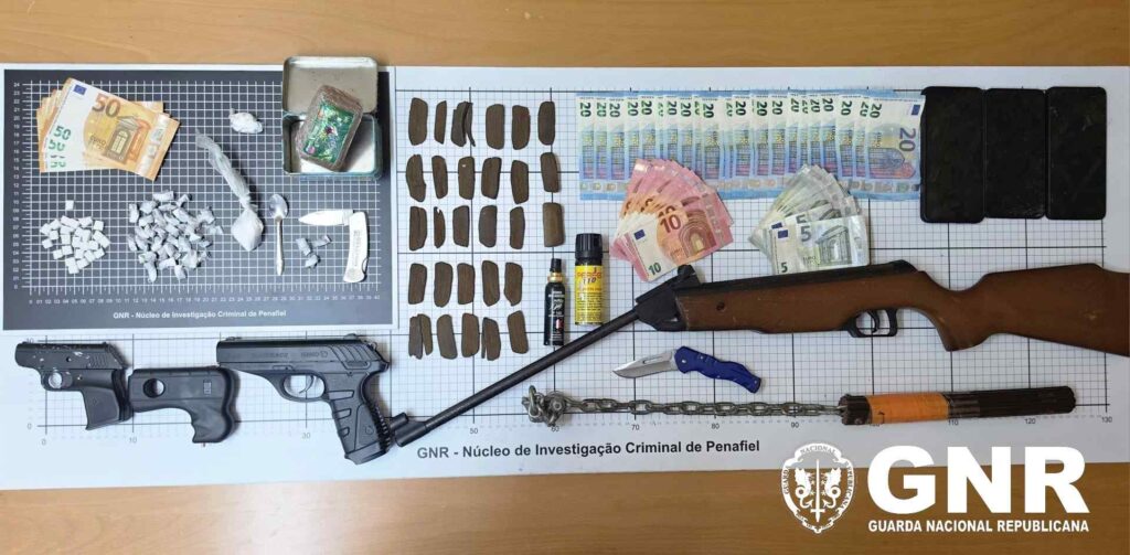 A operação, conduzida pelo Núcleo de Investigação Criminal de Penafiel, resultou na detenção de quatro homens e duas mulheres, com idades entre os 26 e 62 anos, na sequência de uma investigação em curso. Foram realizadas cinco buscas, que permitiram apreender várias doses de droga, armas, dinheiro e equipamentos eletrónicos.